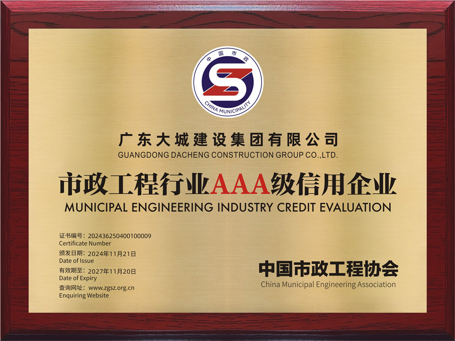 我司首次榮獲“中國市政工程行業(yè)AAA級(jí)信用企業(yè)”稱號(hào)